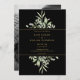 Apresentando delicadas folhas de aquarela verde e tipografia de ouro cônico sobre fundo preto. Este elegante convite de casamento botânico pode ser personalizado com sua informação especial do dia do casamento. Você pode adicionar uma foto ao contrário. Projetado por Thisnotme©