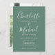 Apresentando nomes de estilo de assinatura, este elegante convite de casamento pode ser personalizado com suas informações em letras quentes em um fundo verde de eucalipto com sua foto escolhida no verso. Você pode personalizar a cor de fundo para corresponder ao seu tema de casamento. Projetado por Thisnotme©