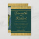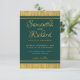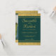 Convite de casamento de luxo em verde e ouro. Personalize com sua foto no fundo.