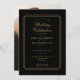 Linhas geométricas elegantes enquadram suas informações personalizadas de casamento em tipografia de ouro em chic em um fundo preto e sua foto especial no verso. Projetado por Thisnotme©