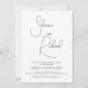 A escrita moderna caligrafia o convite de casamento preto e branco. Procurando um convite para o casamento que incorpore sofisticação moderna e charme minimalista? Sua busca termina aqui. Nosso belo convite para casamento preto e branco oferece uma estética refinada, mostrando seus nomes lindamente renderizados em uma caligrafia brilhante e fluente. A paleta limpa e design cria um ar de elegância subestimada. No verso, uma ilustre fotografia do casal feliz é apresentada junto aos seus nomes, acrescentando um toque pessoal e memorável a este anúncio verdadeiramente especial.