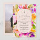 A queda em negrito é muito grande, convite para casamento com fotos florais de cor d'água com flores cor rosa, púrpura, amarela, verde e abstrato e uma forma retangular geométrica arredondada em rosa pincel pastel, adicione sua foto no verso. Perfeito para todos os casamentos da temporada.