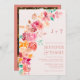 No outono russo, terraço de inverno, convite floral de outono cor laranja e rosa com flores bonito numa coroa floral de aquarela com uma fonte moderna, adicione suas iniciais ou monograma e foto.