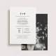 Este convite de casamento ao estilo minimalista é a forma perfeita de dar o tom ao seu dia especial. A frente apresenta um design simples e limpo com tipografia moderna em branco, fornecendo uma canvas vazio para os detalhes do seu casamento. O verso apresenta uma foto em preto e branco do casal, acrescentando um toque pessoal ao convite. O convite é impresso em estoques de cartolina de alta qualidade, garantindo que os convites serão bonitos e profissionais. O design é elegante e subestimado, perfeito para um casal que valoriza a simplicidade e a elegância. O conjunto de convites vem com envelopes correspondentes para concluir a aparência.