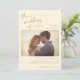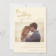 Este convite de casamento para fotos de ouro e creme moderno mostra sua foto filtrada e emparelhada com um roteiro divertido de manuscrito em ouro. É perfeitamente moderno, simples e minimalista.