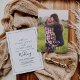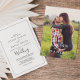 Este simples convite de casamento de fotos rústicas e modernas de boho é perfeito para um casamento simples. A design romântica moderna apresenta a tipografia clássica, em preto e branco, emparelhada com uma caligrafia rústica, mas elegante, com estilo voltado para a mão. Personalizável em qualquer cor. Mantenha o design simples e elegante, como está, ou personalize-o adicionando seus próprios gráficos e trabalhos de arte. Personalize a frente com sua foto de noivado favorita e seus nomes.