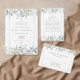 Um convite de casamento elegante, com bonito sábio e lilás que se tropeçam sobre um elegante quadro prateado que envolve seus detalhes de casamento, em texto clássico e sua foto especial no verso. Projetado por Thisnotme©