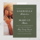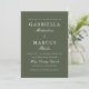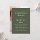 Este convite de casamento branco e verde-chic apresenta uma foto de sangria de cheio e uma tipografia elegante.