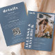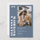 Elegante Bold branco simples sobre convite para casamento de fotos azuis empoeirado com uma fonte moderna em negrito, uma foto e todos em um detalhe no verso com código qr.