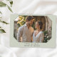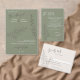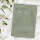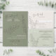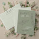Um convite de casamento de eterno com imagens de eucalipto desenhadas à mão num fundo verde de sábio. O roteiro elegante e as fontes clássicas de serif se combinam para destacar os nomes do casal e os detalhes do casamento. O verso da carta foi projetado para que você adicione uma foto horizontal desenhada de forma elegante com uma borda verde fina. Perfeito para casamentos inspirados na natureza ou minimalistas com um toque romântico.