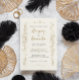 Com folhas de ouro pintadas à mão e flores, este convite para o casamento tem um design com tipografia personalizável de preto e ouro em um fundo de textura de papel creme.