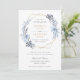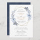 Convites Casamento de Frame de Folhas Azuis Douradas Geomét