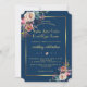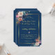 Convites Casamento de Frame de Ouro Floral Azul Glam Dusty