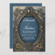 Entra na grandeza do passado com este Convite para Casamento de Frame Dourado do Ornamentado Vitoriano. Apresentando uma estrutura de ouro antiga e intricadamente detalhada com escrolagem floral e rosas decorativos, este design é colocado contra um fundo azul-marinho rico e texturizado com efeitos de patina antigos. O quadro oval opulente oferece o espaço perfeito para seus detalhes personalizados do evento, criando uma primeira impressão inesquecível. Este elegante convite vitoriano é perfeito não só para casamentos, mas também para festas de noivado, chás de panela, renovações de votos, aniversários de marcos, aniversários, bolas de mascarada e eventos formais de escala superior. Sua aparência versátil e real é muito parecida com os temas clássicos e dramáticos de eventos. Personalize facilmente o texto para ajustado da sua ocasião e torne este eterno design exclusivamente seu. Quer você esteja planejando uma bola extravagante ou uma celebração íntima, este convite adiciona um toque de esplendor aristocrático a qualquer evento.