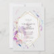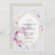 Convites Casamento de Frame Dourado Floral com cinza e Purp