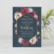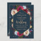 Floral moderno, elegante, Marinho Borgonha de Marsala e Peach Watercolor | Convite Geométrico para Casamento. Chich burgundy, marsala, rosas de aquarelas pintadas por marinho, design de casamento com folhas verdes sobre fundo azul marinho com blush botânico. Possui um bonito design de tipografia escrita à mão com texto "Wedding". Excelente para o outono, casamentos no inverno ou qualquer estação. #3339 Se precisar de ajuda ou itens correspondentes, entre em contato comigo.
