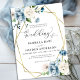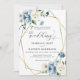 Convites Casamento de Frame Dourado Floral Elegante Azul Be