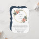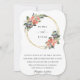 Lindas flores boêmicas e folhagem em tons de coral, blush, azul-marinho e verde, enfeitiçadas em uma estrutura geométrica de ouro em camadas, convite de casamento. A parte traseira da placa apresenta cor azul-marinho com som sólido.