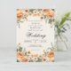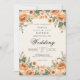 Pessegueiros deliciosos e verde esmagador criam uma fronteira floral romântica. Esta design evoca uma sensação suave, elegante e eterno para o seu dia especial. Perfeito para uma ocasião clássica e graciosa.