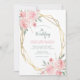 Convites De Casamento De Quadros Geométricos Dourados Florais E Cor-De-Rosa Blush. Lindas flores cor-de-rosa com verde contra linhas geométricas de moldura de imagem em ouro.