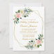 Convites Casamento de Frame Geométrico Dourado Rosa Floral