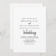 Este convite de casamento moderno de frente e de trás é perfeito para um casamento rústico. O design simples e elegante apresenta a tipografia clássica e a escrita de rico em preto e branco.