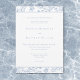 Elevem seu dia especial com o nosso elegante convite de casamento ao estilo Barroco, uma obra-prima de elegância eterno. Apresentando uma delicada borda de chinoiserie azul empoeirada francesa com delicadas flores de linhagem e um pássaro sobre um fundo branco pristino, essa design exude encanto clássico e sofisticação. Sua simplicidade destaca seus detalhes refinados, criando um design tão gracioso quanto sua história de amor. Perfeito para aqueles que apreciam tradição e elegância. Criado pela imprensa simplesmente de farmácia.