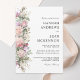 Rosas rosa irresistíveis e flores mistas de jardim com folhas rasteiras e galhos limítrofes a borda esquerda deste convite especial para casamentos florais de aquarelas. As delicadas flores mistas, cor-de-rosa e branca, encontram-se dispostas entre os rosas, acrescentando textura e atração adoráveis. Personalize com seus detalhes de casamento. Outros artigos de papelaria e papel correspondentes estão disponíveis neste popular motivo de rosa.