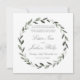 Um convite de casamento quadrado tradicional e elegante, com uma coroa pintada de cor d'água com seus primeiros e médios nomes em um clássico roteiro de casamento, centrado na coroa. Os pais dos nomes de cheios da noiva e do noivo, sem títulos, estão representados no topo pedindo a honra da presença de seus convidados no casamento de seus filhos. Seus sobrenomes aparecem no verso em uma coroa menor com o endereço do local.