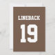 A noiva e o noivo que adora assistir ou jogar futebol vão adorar estes convites para casamentos com tema de futebol, com um campo de futebol de 50 jardas de linha e um fundo sutil de natas e faixas brancas, futebol e faixa e um número de camisola e design de nomes que podem ser personalizados nas costas em cores marrom e branca de futebol. Trabalho de arte © Chrissy H. Estúdios, LLC. Todos os direitos reservados.