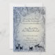 Veja uma versão horizontal abaixo! Um convite de casamento encantador num design de colheita com imagens de fundo de vinhas de vintage e um damask desbotado. Azul pálido desaparecendo em creme. Gatos ao longo do fundo.