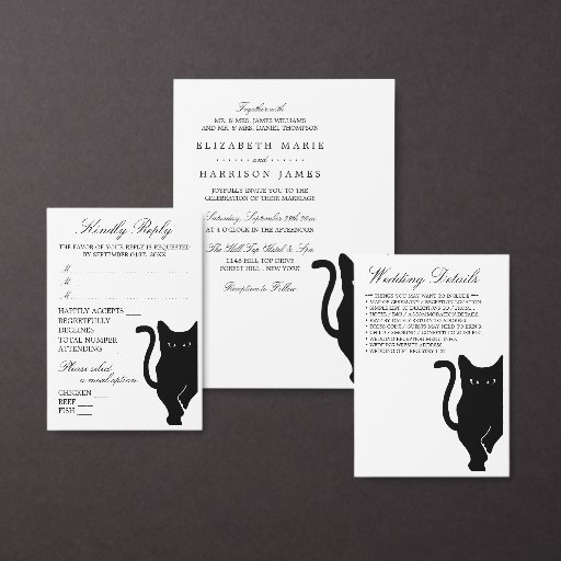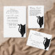 Estes convites são perfeitos para qualquer casal planejando uma celebração romântica e moderna de casamento. A design apresenta um gato preto desenhado por uma mão branca sobre um fundo branco limpo. O design simples pode ser personalizado para se adequar ao seu evento especial e seria a peça perfeita para qualquer festa temática elegante e chique, incluindo chás de panela, noivados, chás de casamento, festas de aniversário e muito, muito mais.
