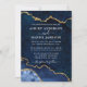 Cartão de Convite para Casamento de Geodo Marble Azul e Dourado Elegante