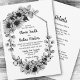 Convide seus amigos e entes queridos para o seu casamento com este convite de casamento floral de girassol preto e branco elegante. Projetado para o casal econômico, este convite inclui as informações de recepção, os detalhes da solicitação de RSVP e quaisquer outras informações que você queira incluir no verso do convite, salvando o custo de compra de cartazes extras e artigos de papelaria.