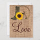 Este convite de casamento rústico é perfeito para qualquer casamento no interior oeste. Ele apresenta um design de burlap impresso no país rústico em ambos os lados do convite com uma roda de vagão, uma bota de cowboy e um design de girassol no topo. A parte de trás do convite tem o mesmo arroto rústico do país, botas, roda de vagão e design de girassol com a palavra "Amor" em roteiro. É um anúncio de casamento único para um casamento de cowboy ou um casamento de campo. Você pode mudar esta palavra para os nomes da noiva e do noivo, se quiser. Use o botão "Personalizar".