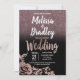 Estilo, chic, e simples truques de ouro rosa, flores, e tipografia, impressos em fundo preto na moda, convites para casamento. Este design clássico e sofisticado é perfeito para o casal de competição de tendências e na moda. Personalize com sua própria mensagem na frente, assim como um monograma personalizado na parte de trás. Todas as impressão design.