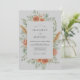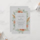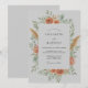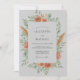 Um charmoso desenho de grinalda envolve um painel central, apresentando delicadas florações corais, folhagens finas e toques de gramíneas douradas. A arte inspirada em aquarela evoca uma atmosfera suave e romântica com tons terrosos. Perfeito para uma ocasião caprichosa e elegante.