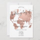 Simples mapa do mundo do casamento da folha de ouro rosa, perfeito para o casamento de destino, viajante.