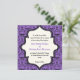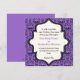 Os crânios molham o padrão preto roxo convite para o casamento de Halloween. Este elegante design exibe um padrão floral e crânio úmido e uma moldura de marfim no centro.