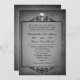 Um convite assustador para os casamentos de Halloween mais assustadores. Um quadro vitoriano coberto por um crânio encerra suas informações personalizadas de casamento acentuadas com ornamentos antigos. Tudo se senta sobre um negro e uma cinza. Acalme-se e mantenha-se firme em alguém! Disponível em cores de fundo alternativas com produtos correspondentes.