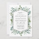 Convide os convidados com um estilo fresco e moderno com este convite de casamento com uma coroa de folhas de eucalipto em aquarela em torno de uma moldura hexagonal elegante. A tipografia limpa e a paleta botânica suave parecem elegantes e naturais—perfeito para casamentos em jardins, rústicos ou minimalistas modernos. Fácil de personalizar para qualquer local.