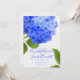 Hídrangas de aquarela azul-claro em um fundo branco macio. Procure placas correspondentes e produtos de festas.