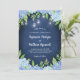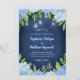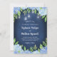 Estes convites para o casamento apresentam flores azuis de hidrangea azul-aquática e folhas de folhagem verde sobre fundo azul-marinho com luzes de jarro de pedras. Personalize-os com o seu próprio texto. Estes convites fazem parte de uma coleção que inclui uma gama de produtos correspondentes. Visite as páginas de coleta em nossa loja para ver o intervalo de cheios.