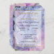 A beleza de um hydrangea floresce quando os tons se misturam de azul a lavanda para rosa e branco forma o fundo do seu convite para o casamento. Uma caixa dourada com uma camada translúcida muda a beleza da hydrangea para que seu convite seja fácil de ler. Os nomes da noiva e do noivo, estão em ouro como "pedem a honra de sua presença na celebração do casamento". O texto preto é usado para o resto do seu convite. O cartão vem no rico cortado visto aqui, assim como outros e no retângulo regular. A parte de trás da carta é uma aproximação das cores mescladas da flor da hydrangea.