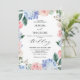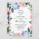 Convite para casamento moderno com detalhes que incluem híbridos azuis claros/azuis poeirentos de cor d'água com cor pastel rosa, pincel, rosas brancas, peonias, folhas de eucalipto, galhos e folhagem. Tons românticos, suaves e sonhentos, primavera, designs florais de cor d'água de verão para combinar com o seu casamento temático. Por favor, encontre mais designs e variações na minha loja de "blisswedingpaperie". E fique à vontade para me contactar para mais personalizações ou itens correspondentes.