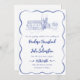 Faça seus convidados se sentirem bem-vindos com este convite de casamento, que apresenta uma ilustração feita à mão de um castelo. Você pode substituí-lo por uma imagem do destino onde será casado (#4C5FA5 azul em cores hexadecimais, fundo transparente preferido). A inscrição em roteiros exibe os nomes da noiva e do noivo. Veja abaixo detalhes do casamento, incluindo a localização, data e hora. O convite está em um belo esquema de cores azul e branca. Procure na minha coleção o conjunto de convites correspondente. ・ ・ Concebido por JessicaAmber. Para mais suites de casamento, visite minha loja Zazzle.com/EventsByJessicaAmber ・ ・ ・ Para pedidos personalizados, envie-me uma mensagem no Zazzle