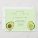 Um convite de casamento de comida com um toque de diversão. Ser representado por duas ilustrações felizes do abacate, que estão profundamente apaixonadas. Este convite mistura uma alegria caprichosa com elegância suficiente para que você possa design seu casamento como quiser. O convite é feito em tons de verde. Coloque seus nomes e informações neste convite, adicione-o ao seu carrinho, e tenha um casamento maravilhoso.