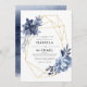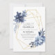 Convite para casamento moderno e chic. Flores azuis poeirentas estão aninhadas no canto de uma estrutura geométrica dourada. As cores da flor vão do marinho profundo ao azul-céu suave. As folhas também são azuis. A parte de trás do convite para o casamento é uma lavagem de aquarela azul macia e suave. Perfeito para um casamento na praia. As escolhas de fontes complementam o tema moderno. Os nomes dos casais de casamento estão em uma fonte moderna e limpa. O restante do texto é uma combinação de fontes clássicas de serifa ereta e itálico. Este convite de casamento floral azul faz parte da coleção do Jardim Indigo. Você encontrará muitas modelos para ajudá-lo a criar facilmente um pacote de papelaria de casamento. Você deve ver um link para ele nesta página. Se você não vir o link ou precisar de ajuda com um item, entre em contato comigo.