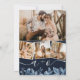Um chic elegante e simples marinho azul indigo com ilustração floral de aquarela e iniciais de fotos de script casamento, adicione 4 de sua foto de casal favorita, convite de casamento chic, adicione suas iniciais no verso. Perfeito para casamentos casuais.