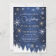 Convite de Casamento de Inverno com Floco de Neve Moderno Azul Marinho e Dourado.